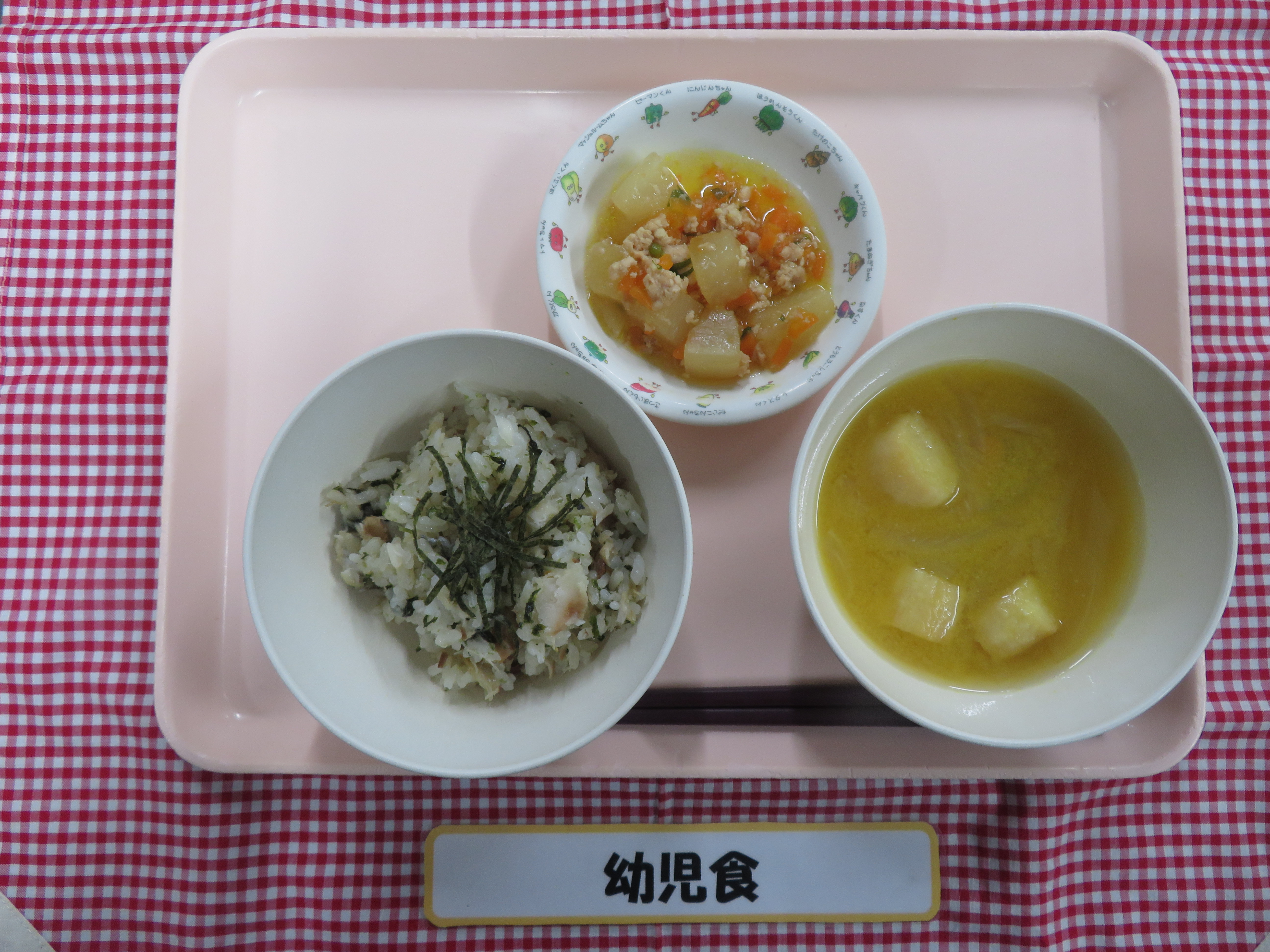- 完全給食(3歳以上児は、主食費を集めさせていただきます。)