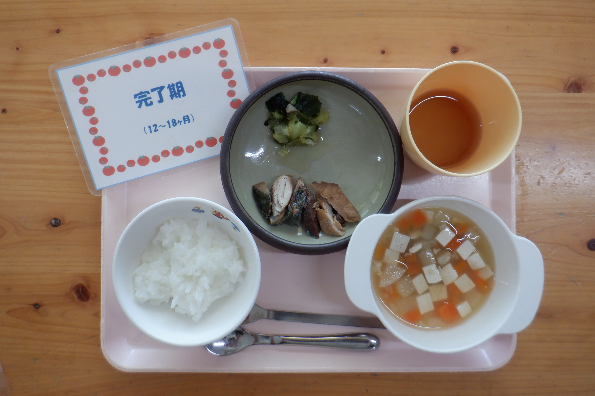 - 完全給食(3歳以上児は、主食費を集めさせていただきます。)